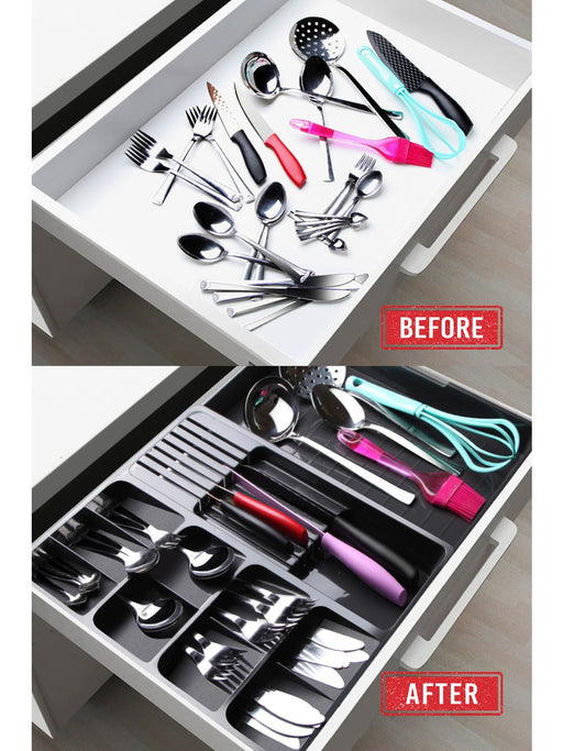 punkto. Verstellbarer Besteckkasten für Schubladen 30–50 cm – Ausziehbarer Besteck Organizer Anthrazit – Schubladeneinsatz Küche flexibel erweiterbar – Besteckhalter Kunststoff 40 x 6,5 cm