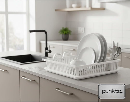punkto. Elite Abtropfgestell für Geschirr – 46x38x9 cm – Spülmaschinenfest – BPA-frei – Kunststoff Geschirrständer mit Abtropfschale – Weiß