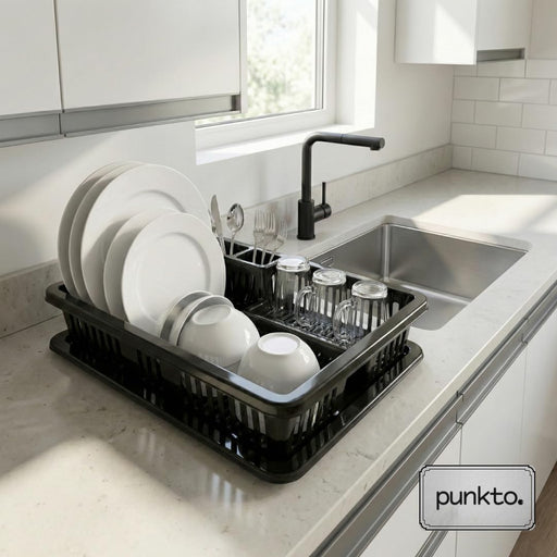 punkto. Elite Abtropfgestell für Geschirr – 46x38x9 cm – Spülmaschinenfest – BPA-frei – Kunststoff Geschirrständer mit Abtropfschale – Schwarz
