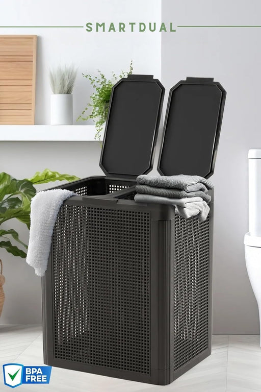 punkto. Smartdual Wäschekorb mit 2 Kammern – 84L – Wäschetrenner mit getrennten Deckeln – Moderner Wäschesammler mit Tragegriffen – Einfacher Aufbau – Anthrazit
