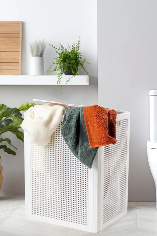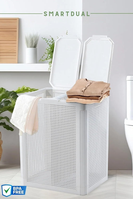 punkto. Smartdual Wäschekorb mit 2 Kammern – 84L – Wäschetrenner mit getrennten Deckeln – Moderner Wäschesammler mit Tragegriffen – Einfacher Aufbau – Weiß