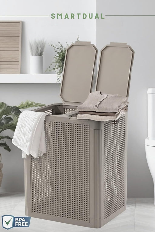punkto. Smartdual Wäschekorb mit 2 Kammern – 84L – Wäschetrenner mit getrennten Deckeln – Moderner Wäschesammler mit Tragegriffen – Einfacher Aufbau – Grau